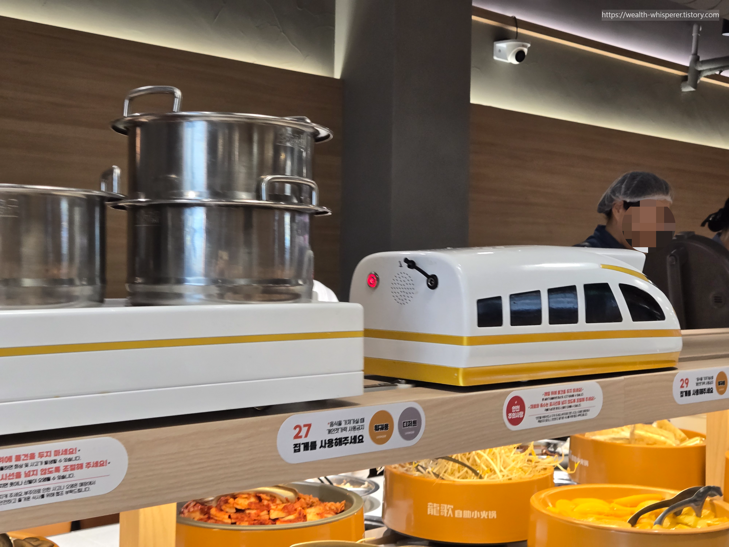 2) 그럼 탕이 기차레일을 타고 배달이 옵니다 ㅎㅎ (엄청난 자동화의 현장...)