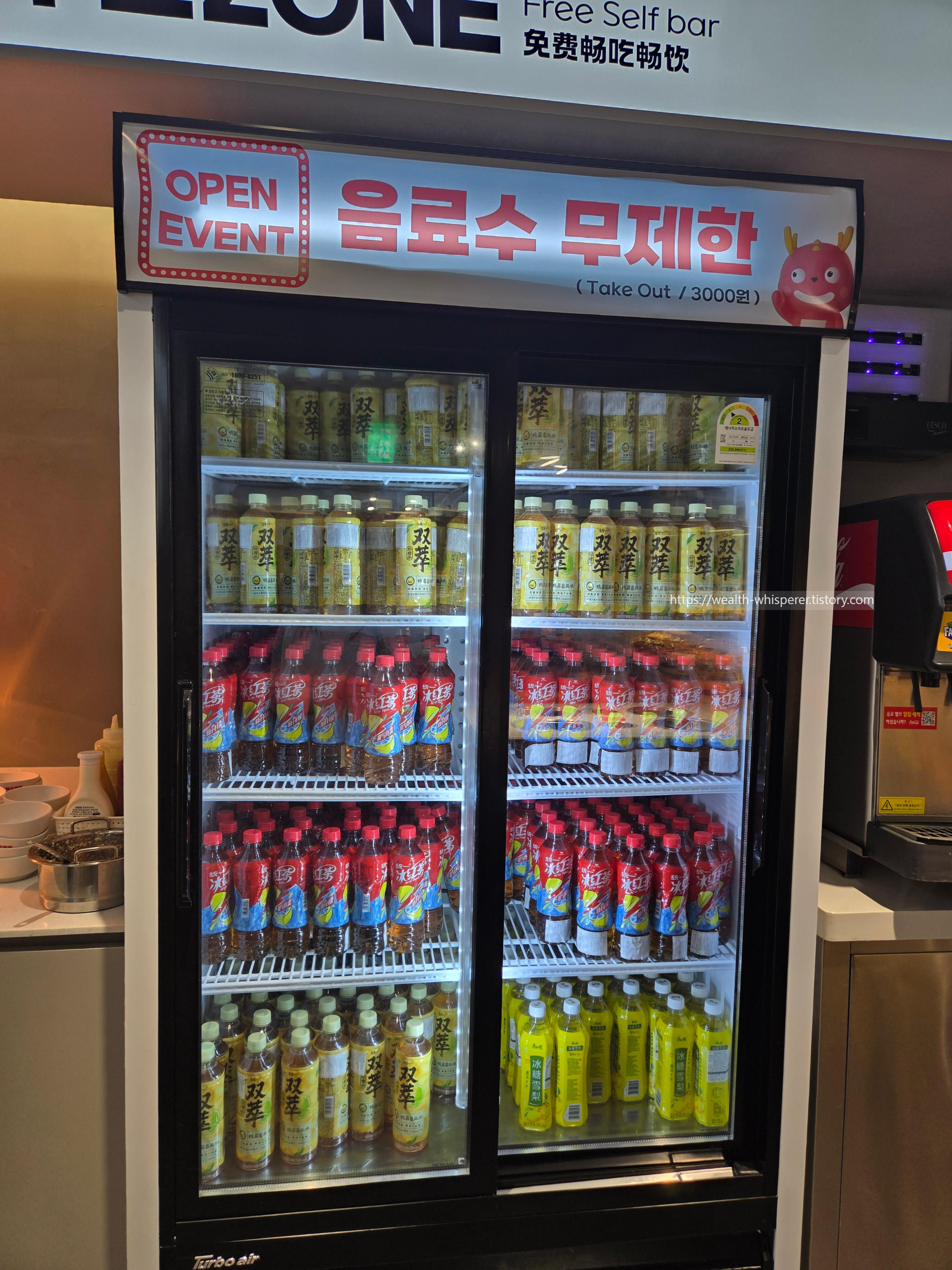 음료수도 무제한으로 제공하고 있었습니다. (저 병들도 무제한!)