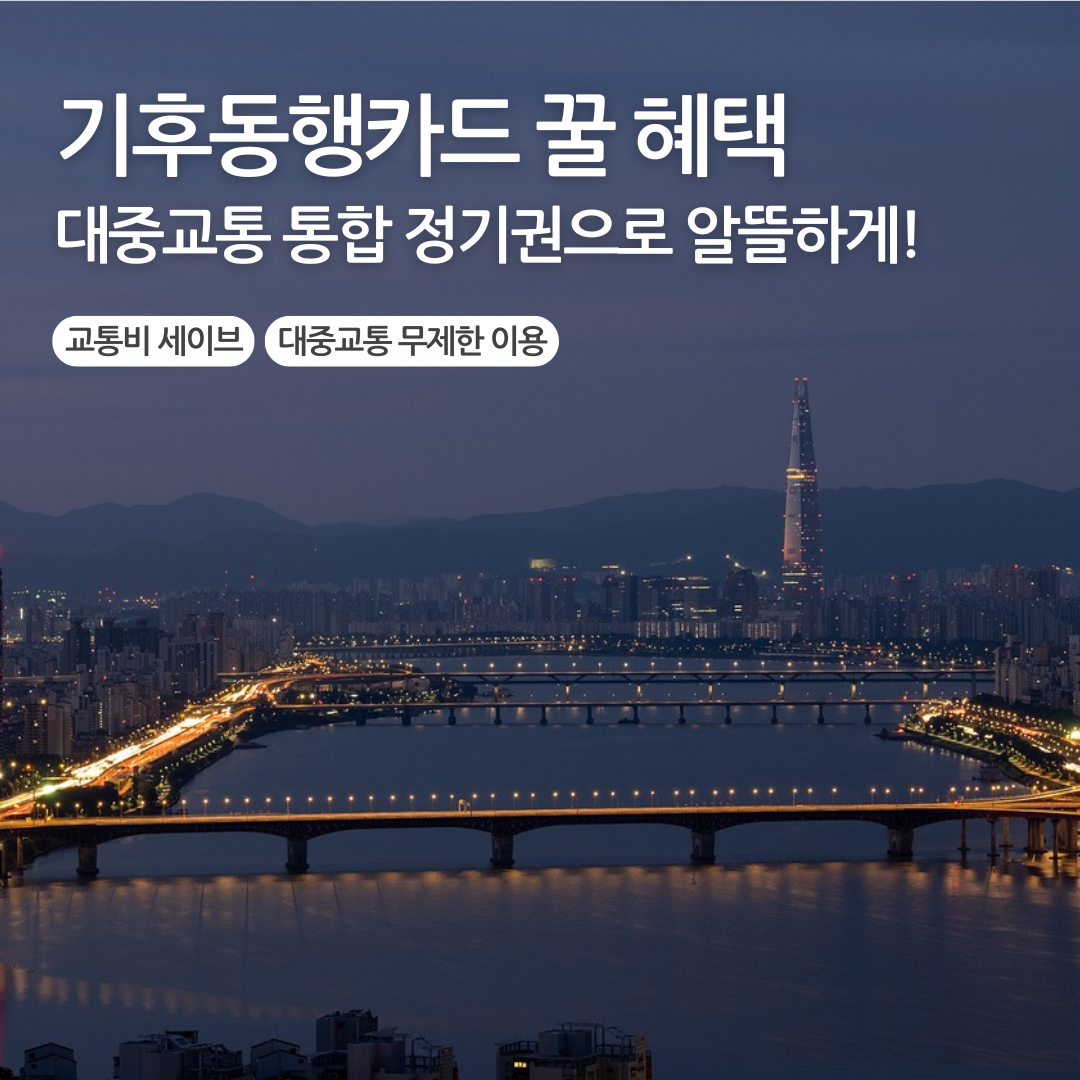 기후동행카드는 1회 요금 충전으로 선택한 사용기간동안 대중교통(지하철, 버스), 따릉이를 무제한 이용할 수 있는 대중교통 통합 정기권입니다.