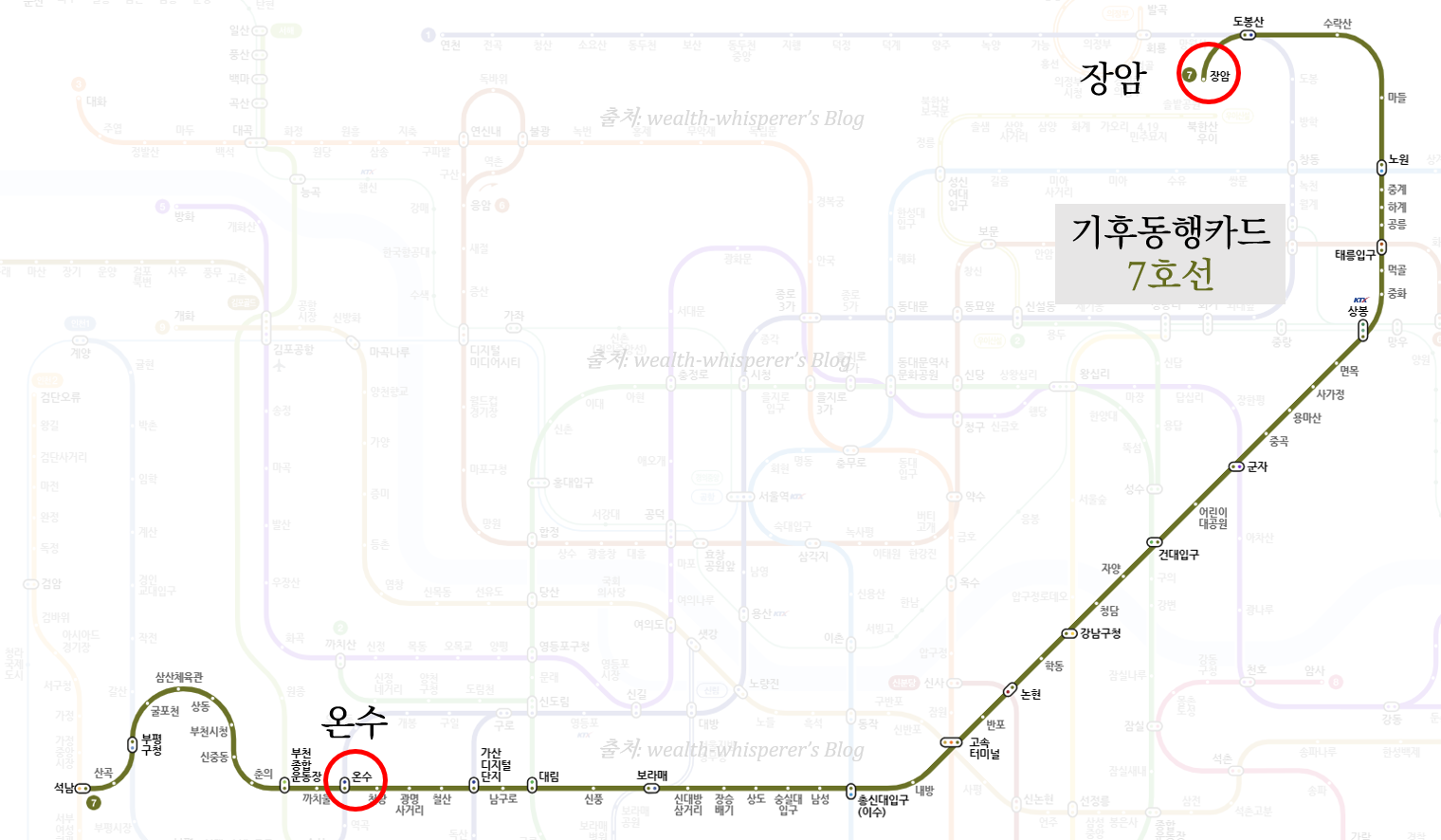 | 7호선: 온수~장암 ▶ 장암역은 의정부이지만 사용 가능한 예외 구간입니다! |