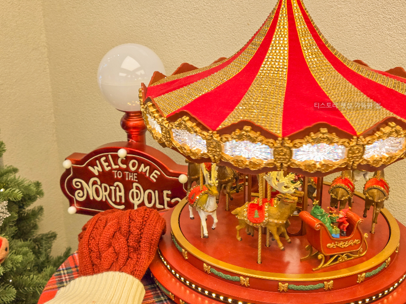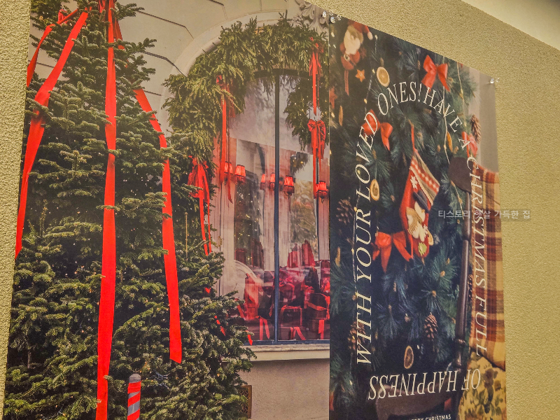 겨울 감성이 물씬 풍기는 포근한 분위기로 꾸며진 카페 내부입니다.