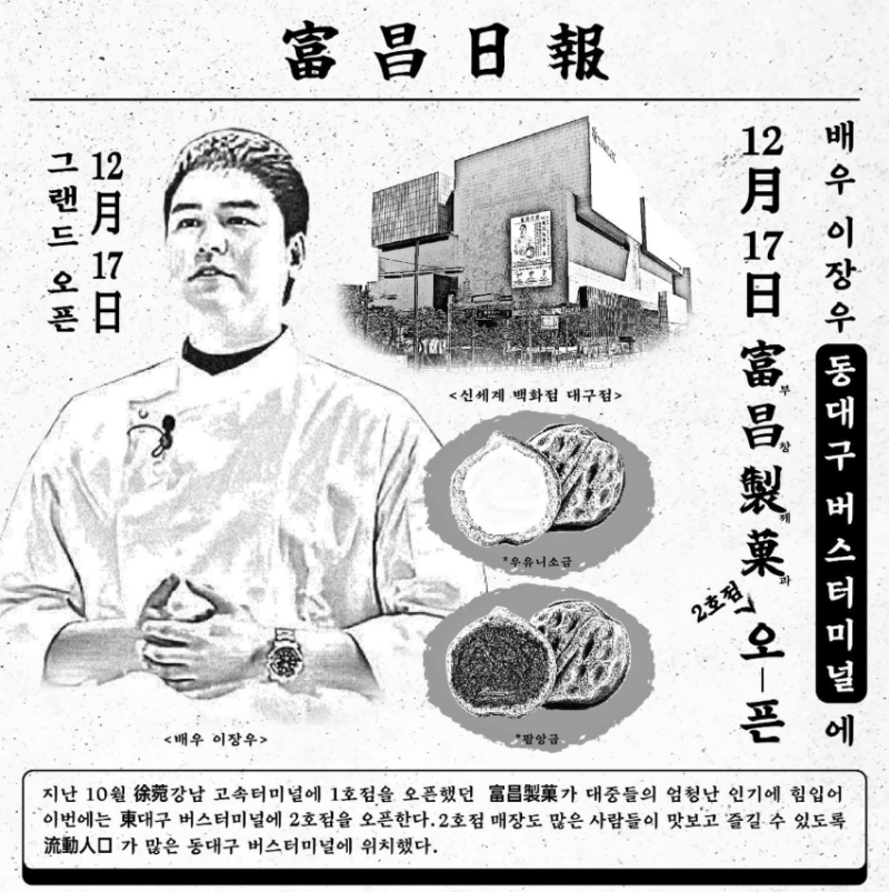 폭풍 먹방으로 유명한 배우 이장우씨와 손잡고 연 호두과자 브랜드 '부창제과'가