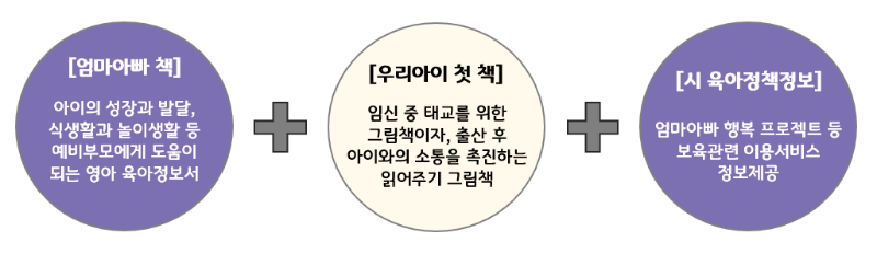 ➡️ 엄마아빠책 1권 + 우리아이 첫 책 2권 + 서울시 육아정책정보 안내책자