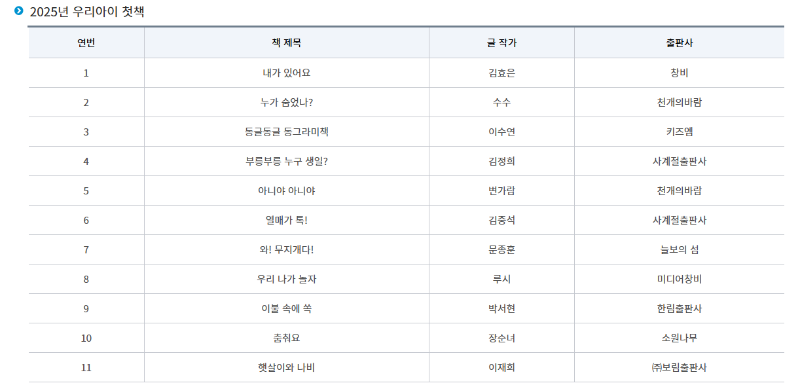 ➡️2025년 우리아이 첫책 선정도서