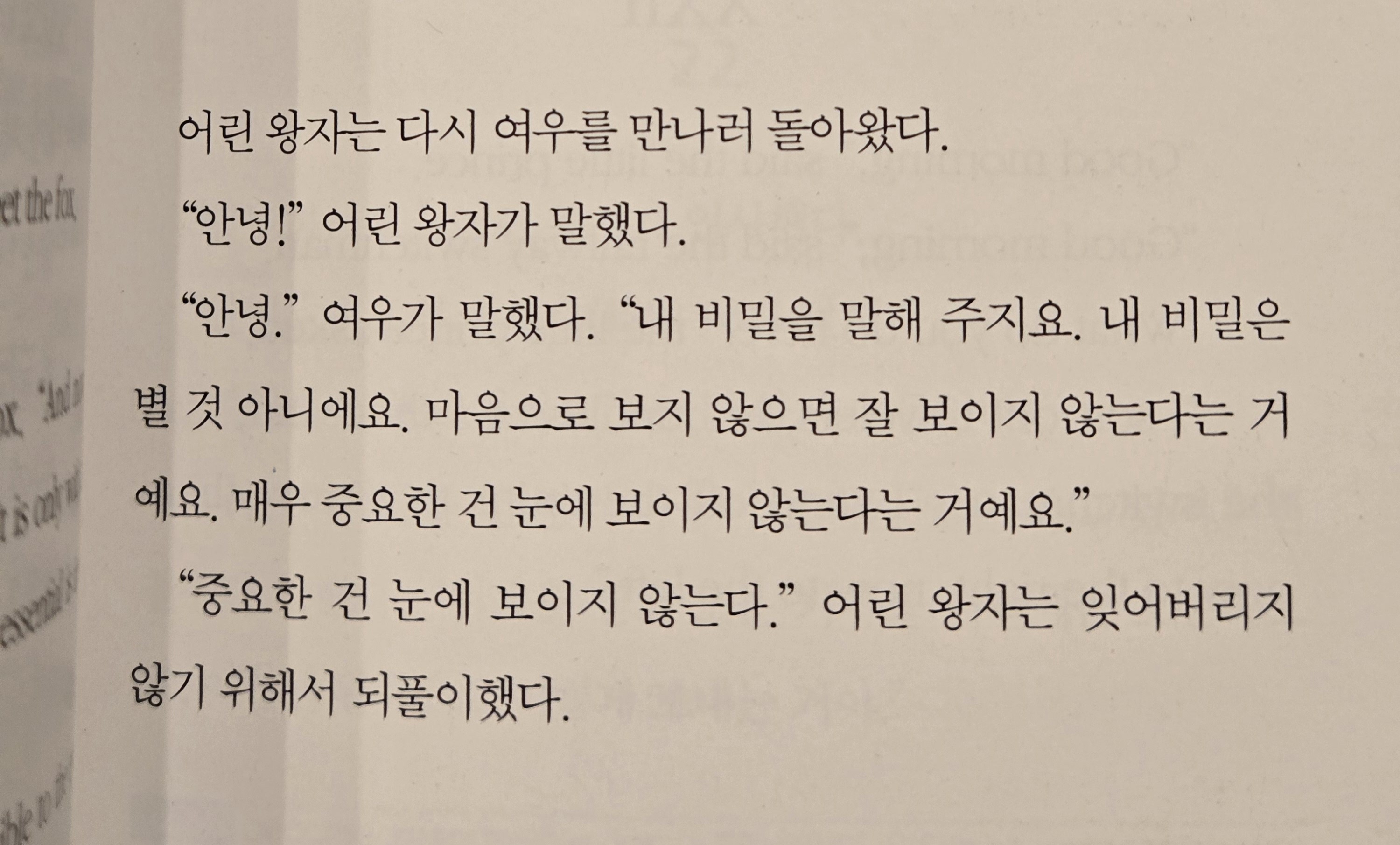 이 책을 덮으며, 조급함과 본질이 아닌 것들이 바오밥처럼 자라나지 않기를 바랍니다. 겉으로 보이는 것으로 판단하고, 평가하고, 효율만 따지느라 진짜 중요한 것을 놓치지 않기를. 어린왕자가 알려준 것처럼, 가장 중요한 것은 눈에 보이지 않는 것이라는 걸 기억하고 싶습니다.