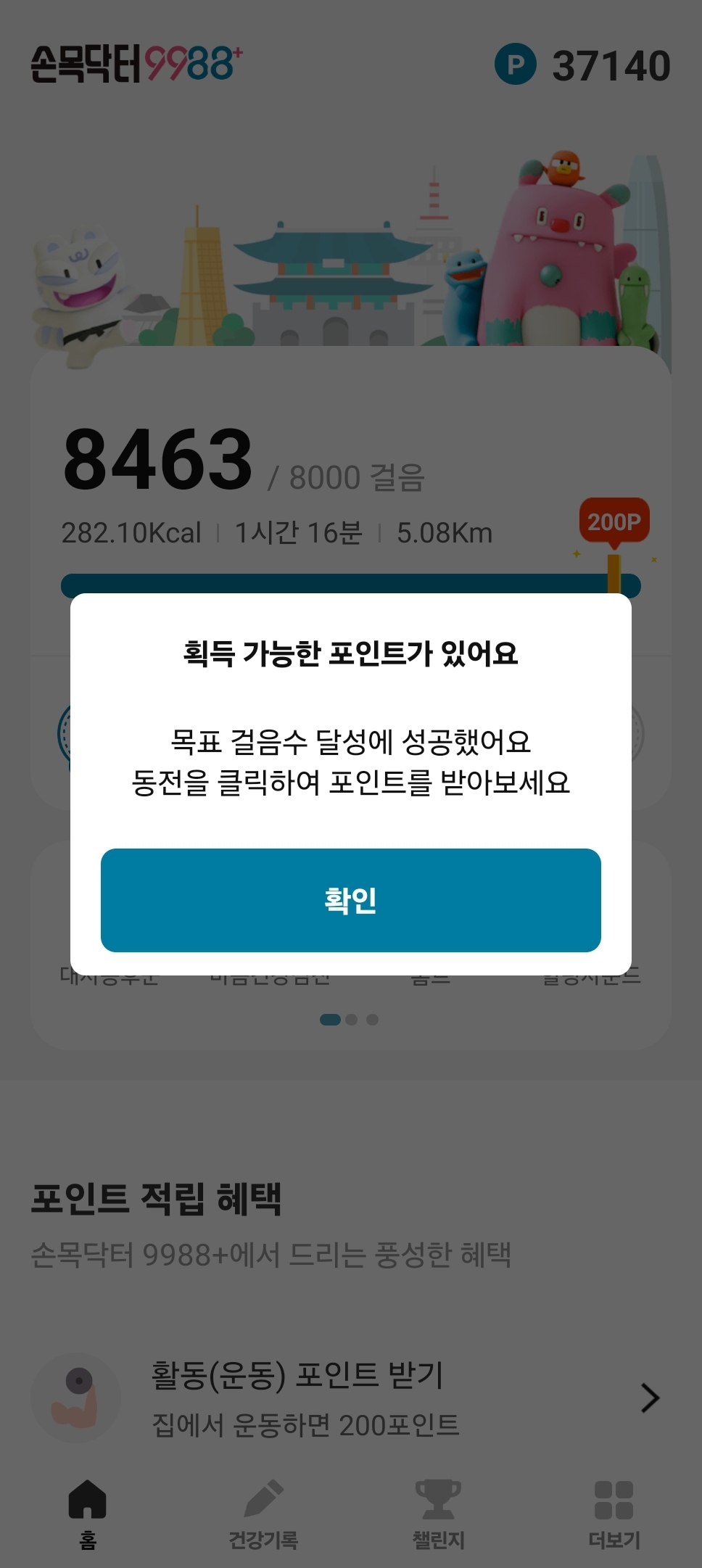 아래 사진처럼 목표 걸음수인 8,000보를 달성하면 '획득 가능한 포인트가 있다'고 뜨고