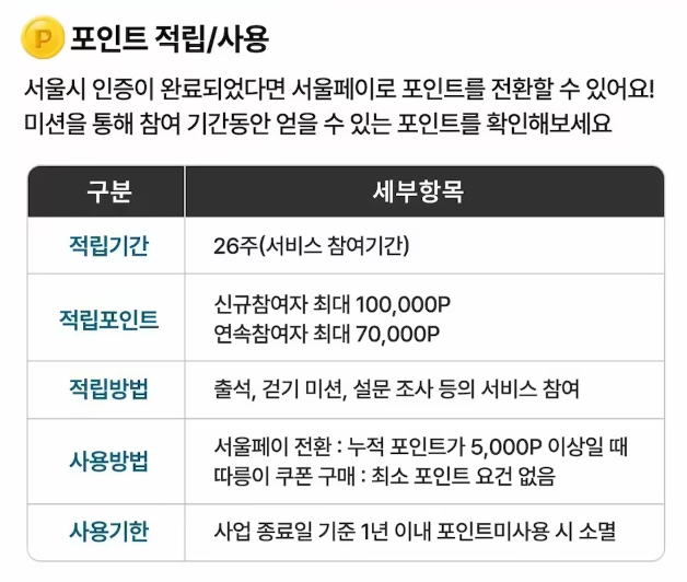 이렇게 적립기간(26주)동안 무려 10만 포인트까지 쌓을 수 있습니다! 연속참여자는 7만 포인트를 쌓을 수 있나봅니다.