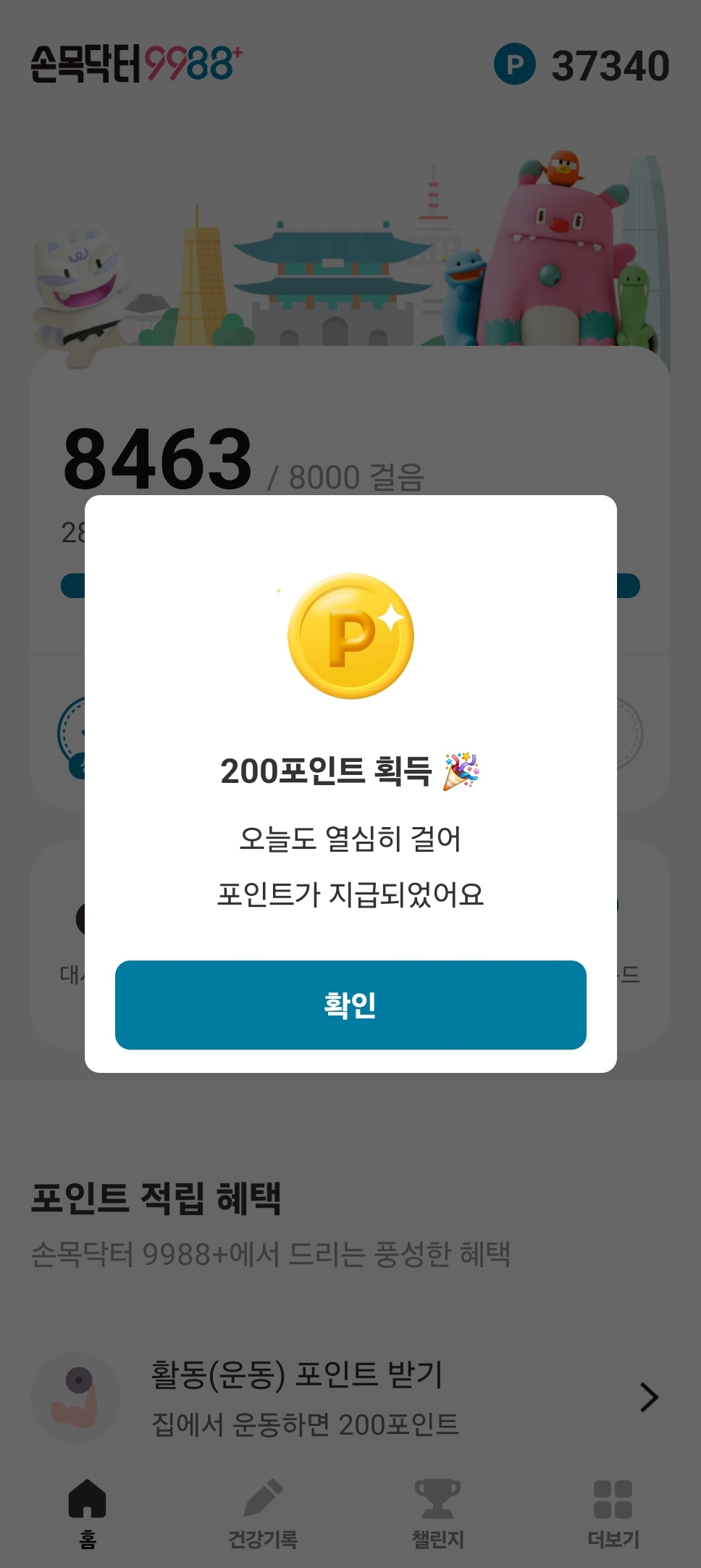 다른 어플은 보통 1만보를 걸어야 포인트를 주는데, 8천보만 걸어도 200p를 주니 혜택이 좋습니다.👍