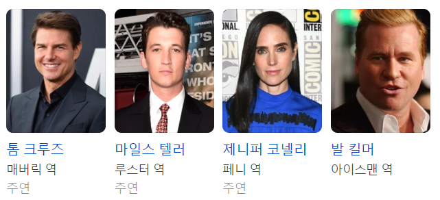 제작비는 1억 7,000만 달러(한화 약 2,400억원)가 들었으나, 월드 박스오피스로만 14억 9,300만 달러(한화 약 2조 900억원)를 벌어들이며 명실상부 최고의 흥행작으로 거듭났습니다. 개봉 첫 주에 3억 달러 기록, 손익분기점을 넘기며 역대 톰 크루즈 커리어 사상 최고 흥행 영화가 되었습니다. 한국에서도 약 820만명의 관객들을 영화관으로 불러냈습니다.
