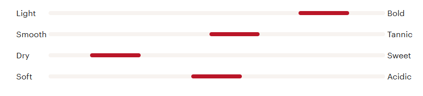 달지 않고(Dry), 바디감이 묵직한(Bold) 와인을 좋아하는 분들이 드시면 좋을 것 같은 와인입니다.