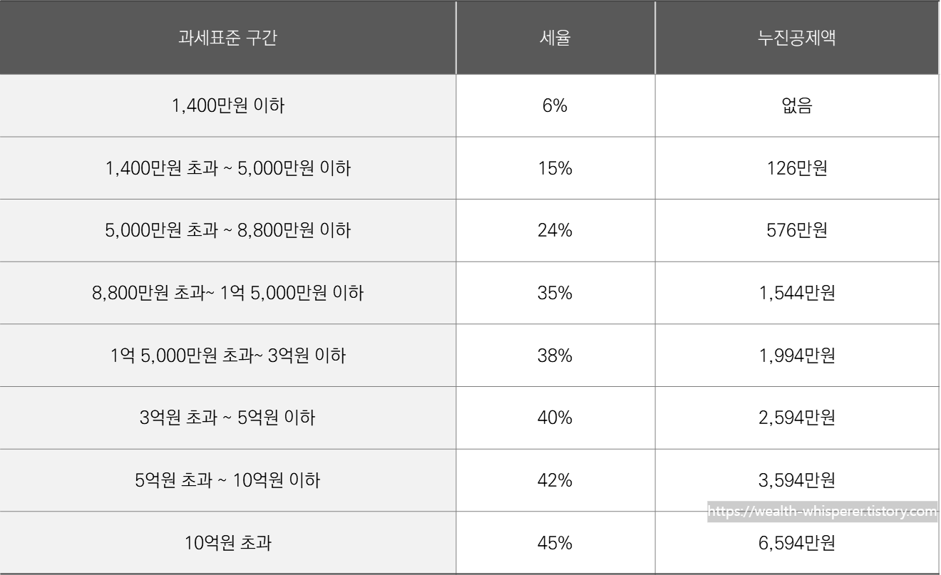 누진공제란, 소득 구간에 따라 높은 세율을 적용할 때 이전 소득 구간에서 이미 적용된 세금을 고려해 차감하여 계산하는 방식을 말합니다.