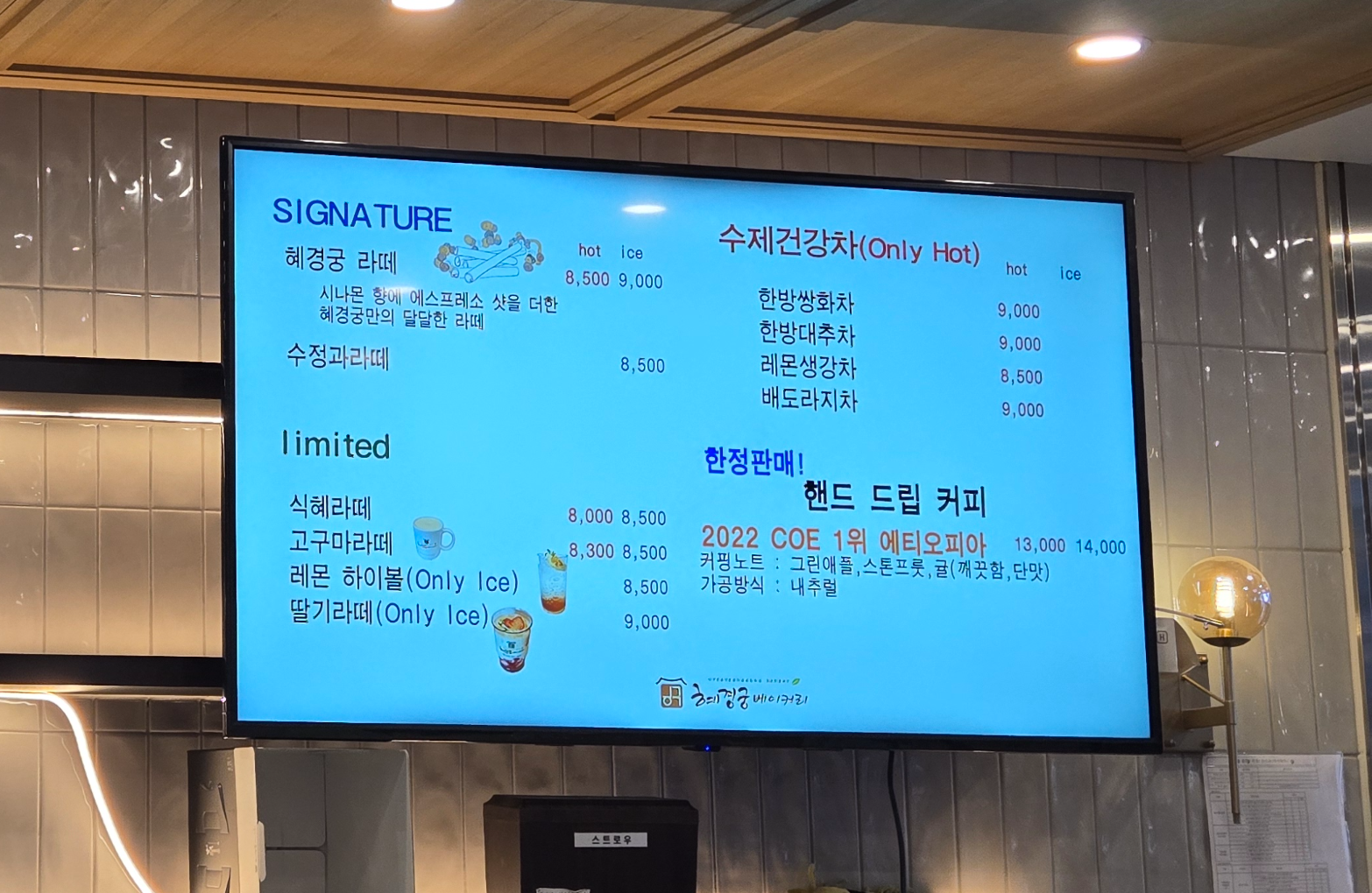 1층에서 주문을하고 2층에서 음료를 받는 방식으로 되어 있습니다.