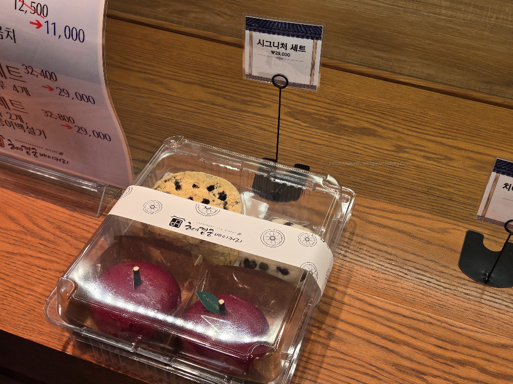 시그니처 빵인 혜경궁 사과와 연탄빵입니다.