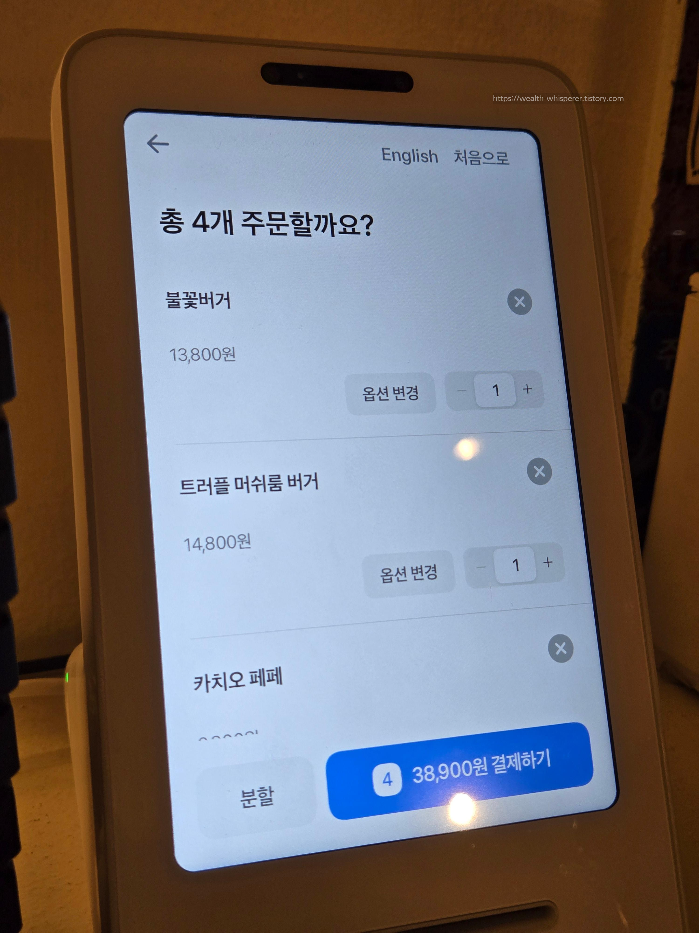 주문은 이렇게 작은 키오스크로 주문할 수 있었습니다.