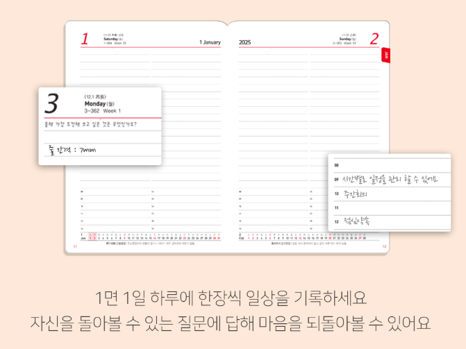 2025년에는 다이어리를 통해 계획을 세밀하게 정리하고, 동기부여하며 한 해를 멋지게 채워가시길 바랍니다.