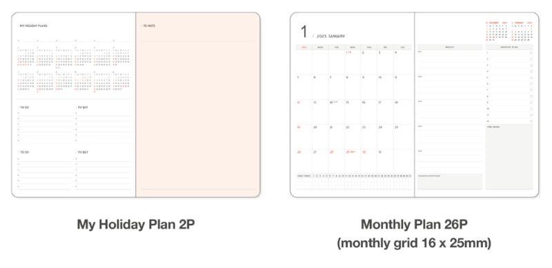 ➡️월간/주간 계획을 효율적으로 작성할 수 있는 다이어리입니다.
