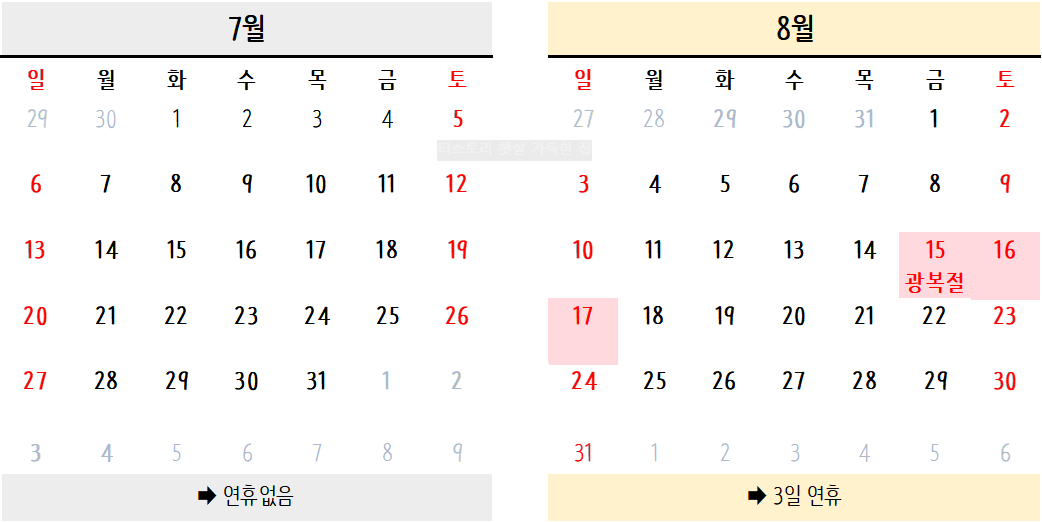 ➡️ 7월 연휴X ➡️ 8월 15일(금) : 광복절